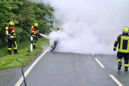 Am späten Vormittag wurden wir zu einem Motorradbrand am Höllberg (St 2195 Richtung Marxgrün) alarmiert. Die ersteintreffende Feuerwehr Marxgrün übernahm die Brandbekämpfung. Die Staatsstraße wurde durch die Feuerwehr abgesperrt.