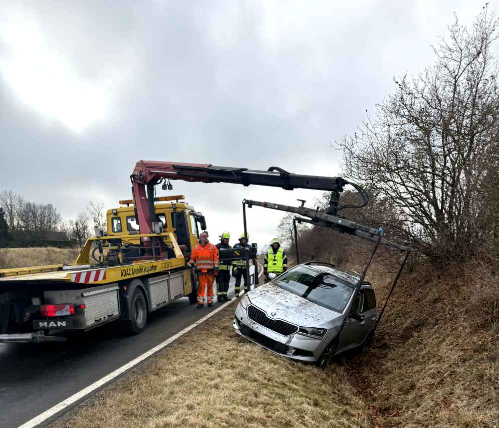 Am Samstagvormittag kam auf der St2196 bei Dörflas ein PKW von der Fahrbahn ab und drehte sich im Straßengraben, die Person konnte das Fahrzeug selbstständig verlassen. Wir übernahmen die Verkehrslenkung, bis die Unfallstelle geräumt war.